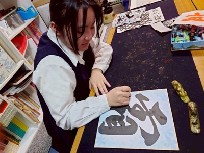 そして、4歳から高校生までの学生部に色画用紙には自分の名前を、色紙には好きな季節の言葉を書いてもらいました。