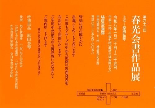 - 2024-01-19 第61回春光会書作品展:2024年1月16-21日@銀座鳩居堂画廊