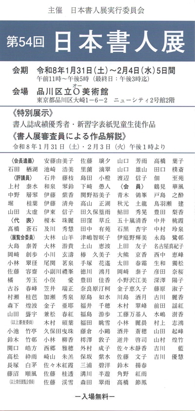 - 出品:本院運営総務 古谷春峰・佐藤容齋・小池竹亭ほか全書芸会員